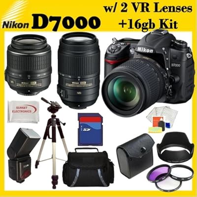 This Kit Includes: 1- Nikon D7000 16.2MP DX-Format CMOS Digital SLR with 3.0-Inch LCD 1- Nikon 18-55mm Zoom NIKKOR Lens 1- Nikon 55-300mm Zoom NIKKOR VR Lens (In White Box) 1- 16GB Hi Speed Error Free Memory Card 1- Hi Speed Card Reader 1- Universal Camera Flash 1- 3 Piece 58mm Filter Kit 1- 3 Piece 52mm Filter Kit 1- Soft Deluxe Carrying Case 2- Hard Tulip Lens Hood 1- 72 inch Size Tripod 1- LCD Screen Protectors