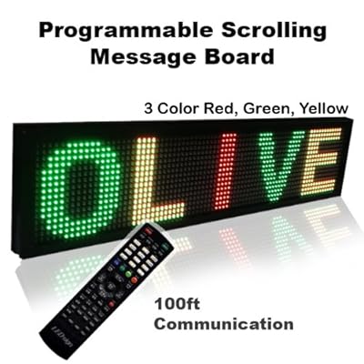 "A Great Investment For Your Business!This Money Making Machine Constantly Displays Pre-Loaded icons, Images, Time, Date And Your Own Messages,Even During The Day When The Sign Is Exposed To Strong Sunlight.Finally Catches the Customers' Attention, Brings Them Into Your Store Among Others!Imagine Your Business Ad Messages on this LED Sign, On For 24/7, Working Hard For You!SALES BOOSTERMust have Business Advertising Tool[SPECIFICATIONS]Frame Size H 40.75""Frame Size W 59.75""Module size (inch) 19""Pixell pitch (inch) 1.18""Pixell pitch (mm) 30mmModule in Row 2Module in Column 3Total Modules 6LED Bulbs in 3color 3,072Resolution(pixel) Y 32Resolution(pixel) X 48Color: 3 ColorBrightness: 2500 - 8000 nits(adjust 1-10 level)Viewing Distance: 5ft ~ 300ftMemory: 100 slots x 512 per slot = 51,200 LettersLifespan: 100,000 hours(approx. 10yrs)Humidity: 0-95%Waterproof: YesOperating Temp.: -13F ~ 113FInput power: AC 110VEnergy consumption: 57w~228wOperation: Infra-red remote controller(100' working range)[PRODUCT DESCRIPTION]-Real Time Clock & Date-Stop-watch-Adjustable Letter width-Multi Language-Animating Icons-8 Fonts-Special Characters-Symbols-Timer On/ Off-5 Min Installation Package-Images-Neon Tubing Effect-Adjustable 10 Level Brightness-1 or 2 Line Message-Adjustable Message Display Speed-Lifespan 10 years-Save Messages, Display Selectively-Create Your Messages upto 100-Low Energy consumption[TRANSITION EFFECTS]-AUTOMATIC-DRAMA-BEAM-TO PASS-SCROLL-HURRICANE-MORE*5 Min. Easy Installation Kit Included.*Worry free Shipping Insurance Included*Waterproof treated by High Quality Dow Corning silicone*1 Year Full warranty + 2 Year limited warranty* Made in USA"