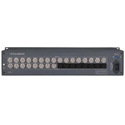 Atlona 16x8 Professional Composite Video (BNC) Matrix Switch. Model: AT-VIDEO1608The Atlona AT-VIDEO1608 is an 16 input 8 output Commercial Video (BNC) matrix switcher. The AT-VIDEO1608 is one of the world''s advanced matrix switchers. Is is capable of being controlled though RS232 via software included or via a third party control system. Switcher is designed to handle high quality video signals without any degradation.Main Features: Power-Fail Protection, allows switcher to restore previous settings LCD display, shows all programmed commands and switcher responses Preset ability, allows user to save specific tasks under one of the 10 presets and call it back with shortcut RS232 Communication Control Input, allows to control switcher via included advanced Control software or Third Party Control System IR Remote Control Inputs: 16 x Video female(1 x BNC female per input) Outputs: 8 x Video female (1 x BNC female per output) Connectors: Composite Video (BNC female) Compatible Formats: NTSC, Pal, Secam Lock Safe, allows user to lock unit from being accidentally switched to incorrect mode Undo Function, allows user to undo the incorrect operation and return to the previous setting Standard 19'' Rack Mount Size - 2U