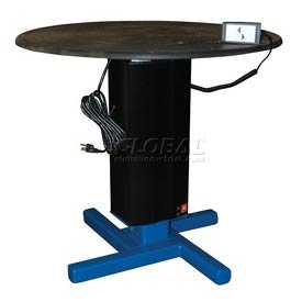 TURNTABLE WITH POWERED HEIGHT ADJUSTMENT Turntable Offers Powered Height Adjustment For Maximum Operator Convenience. This ergonomically designed turntable offers powered height adjustment to provide a proper material work height for assembly and packing stations. Linear actuator offers infinitely adjustable height within lift range using a hand pendant control with an 8' cord. Unit requires 110V, 1-phase AC power source. Manually rotated bi-directional turntable top rotates 360 degrees for easy positioning of load. Base has a compact 24-"L x 24-"W footprint to easily fit into small workstations. Steel construction with a durable enamel finish.