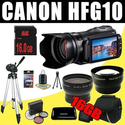 Featured Item: The VIXIA HF G10 Full HD Camcorder with 32GB Internal Flash Memory Brand New USA w/ Supplied Manufacturer Accessories PLUS! + This DavisMAX Bundle Including:1- 3 Piece Filter Kit Includes: UV, Circular Polarizer and Flourescent Filter and Hard Case1- 16GB SDHC Secure Digital Memory Card (Memories are Priceless!)1- 0.45x Wide Angle Lens w/ Pouch and Caps (Capture That View!)1- 2x Telephoto Lens W/ Pouch and Caps (More Zoom is better!)1- Full Size 50" Tripod W/Carry Bag 1- Multi 50 in 1 USB Memory Card Reader (Download your Images Quickly!)1- Memory Card Wallet (Keep your Memory Cards Safe!)1- Padded Carrying Case (Protect your Investment!)1- Mini Table Top Tripod1- Pack of LCD Screen Protectors (Protect your LCD!)1- Lens/LCD Maintenance Cleaning KitMore about this camcorder:The VIXIA HF G10 allows you to record up to 12 hours of clear high definition video to a 32GB internal flash drive or to two SDXC-compatible memory card slots. With Relay Recording, the camcorder automatically switches video recording from the internal drive to the SD memory cards when the memory becomes full. No need then to worry about running out of recording time during a thrilling, once-in-a-lifetime shot. With SDXC memory card compatibility, you'll have card storage capacity from more than 32GB up to 2TB and ultra-fast data transfer speeds.