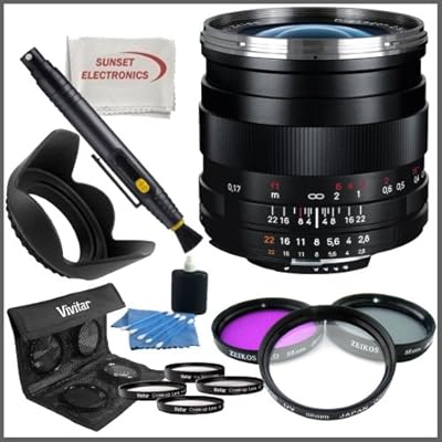The wide angle Zeiss Distagon T* 25mm f/2.8 ZF.2 Lens for Nikon F Mount is the most advanced version of the legendary Distagon, a high performance manual focusing lens with close focus capabilities, first introduced in 1961. The Distagon T* 25mm f/2.8 ZF.2 is a recalculation of this design for use with modern SLRs and DSLRs using either full-frame or smaller sensors.This Kit Includes:1-Zeiss Distagon T* 25mm f/2.8 ZF.2 Lens for Nikon F Mount 1- 3 Piece Professional Filter Kit (UV, CPL, FLD)1- 4 Piece Macro Close- Up Kit (Diopters +1+2+4+10)1- Tulip Lens Hood1- Lens Cleaning Pen1- Lens Maintenance Kit1- Sunset Electronics Microfiber Cleaning Cloth